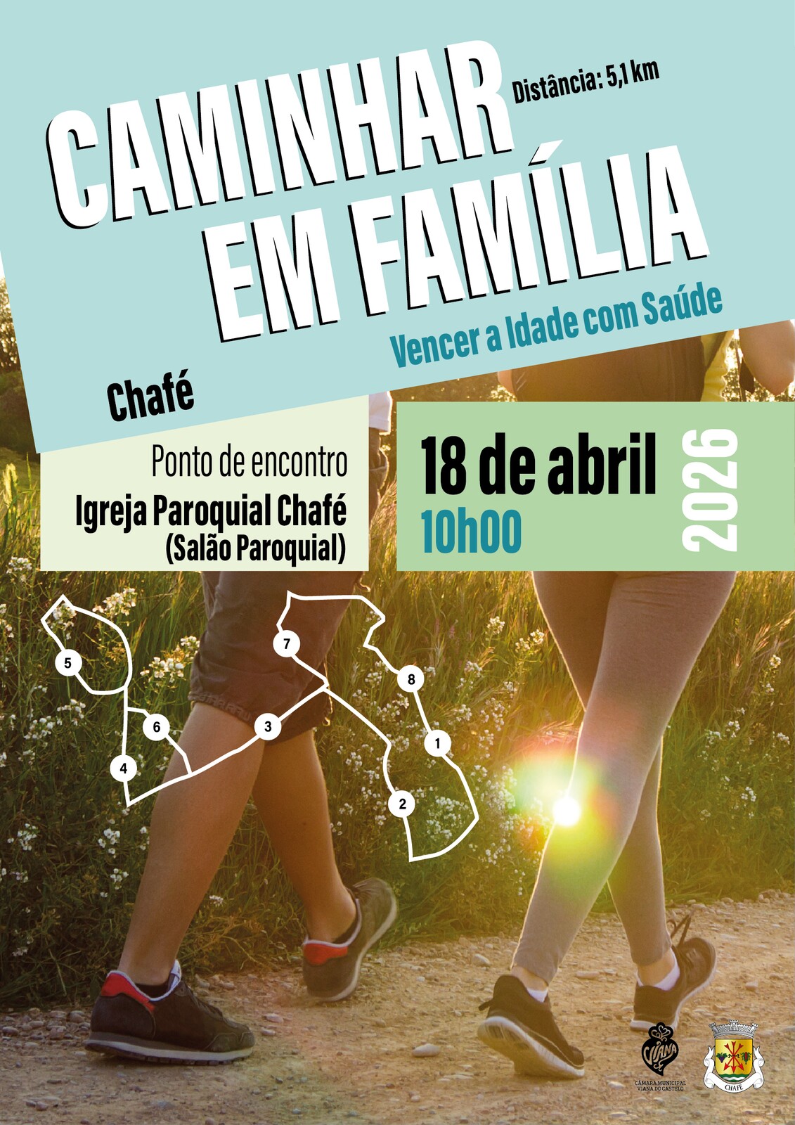 ✅ As caminhadas têm como objetivo o envolvimento de toda a família, pais, filhos, netos e avós, incentivando hábitos de vida saudáveis e momentos de convívio intergeracional.