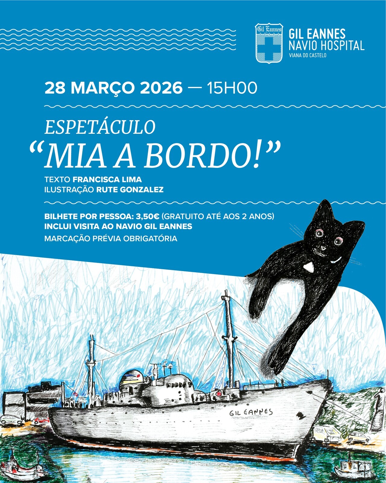 No dia 28 de março, sábado, a bordo do Navio Gil Eannes será realizado o espetáculo inspirado no livro “Mia a bordo – uma visita ao Navio Gil Eannes”, no âmbito da participação da Fundação Gil Eannes, FP na 5ª Edição da Agenda Nacional “À Descoberta do Turismo Industrial”, que se realizará de 21 de março a 04 de abril.