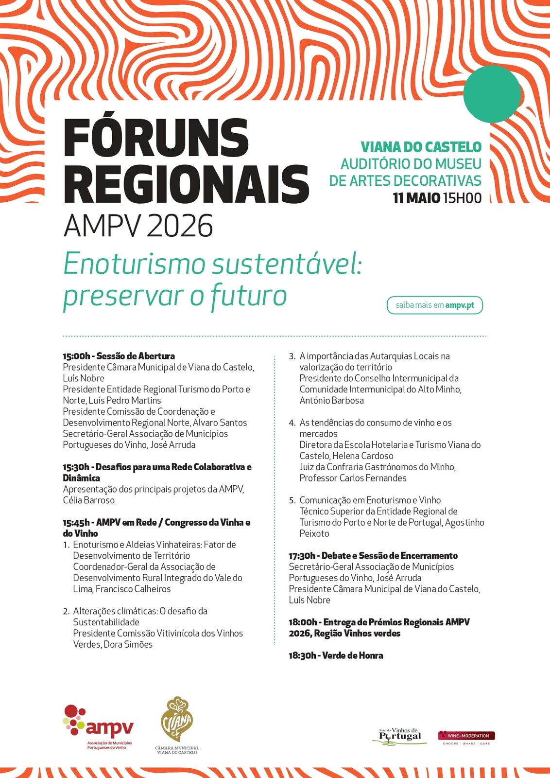 No próximo dia 11 de maio, terá lugar no auditório do Museu de Artes Decorativas de Viana do Castelo, pelas 15h00, o Fórum Regional dos Vinhos Verdes, uma parceria entre a Associação de Municípios Portugueses do Vinho (AMPV) e a Câmara Municipal de Viana do Castelo, com o objetivo de debater os vários desafios desta região vitivinícola. Este Fórum serve também como plataforma para a AMPV apresentar os seus projetos nacionais e ainda para se auscultar os agentes locais sobre as dinâmicas específicas do território, abordar o potencial do enoturismo, promover este território vinhateiro (Região dos Vinhos Verdes), bem como entregar os Prémios Regionais AMPV, que distinguem o mérito de entidades e projetos locais da nossa região.