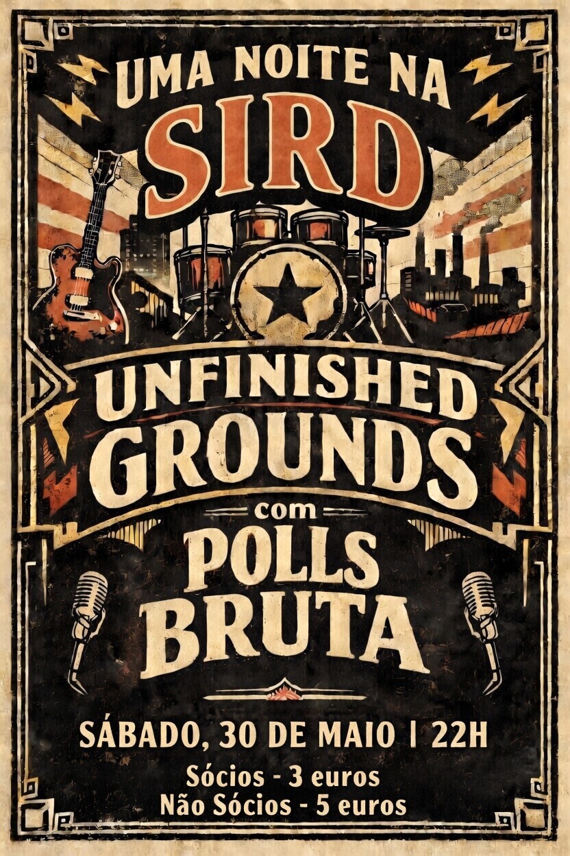 A Sociedade de Instrução e Recreio Darquense (SIRD) inaugura, no dia 30 de maio, o ciclo "Uma Noite na SIRD". Este novo momento de promoção artístico-cultural estreia-se com uma noite dedicada ao rock, trazendo ao palco a energia dos Unfinished Grounds e a apresentação oficial dos recém-formados Polls Bruta. Uma oportunidade imperdível para apoiar a cena musical local.