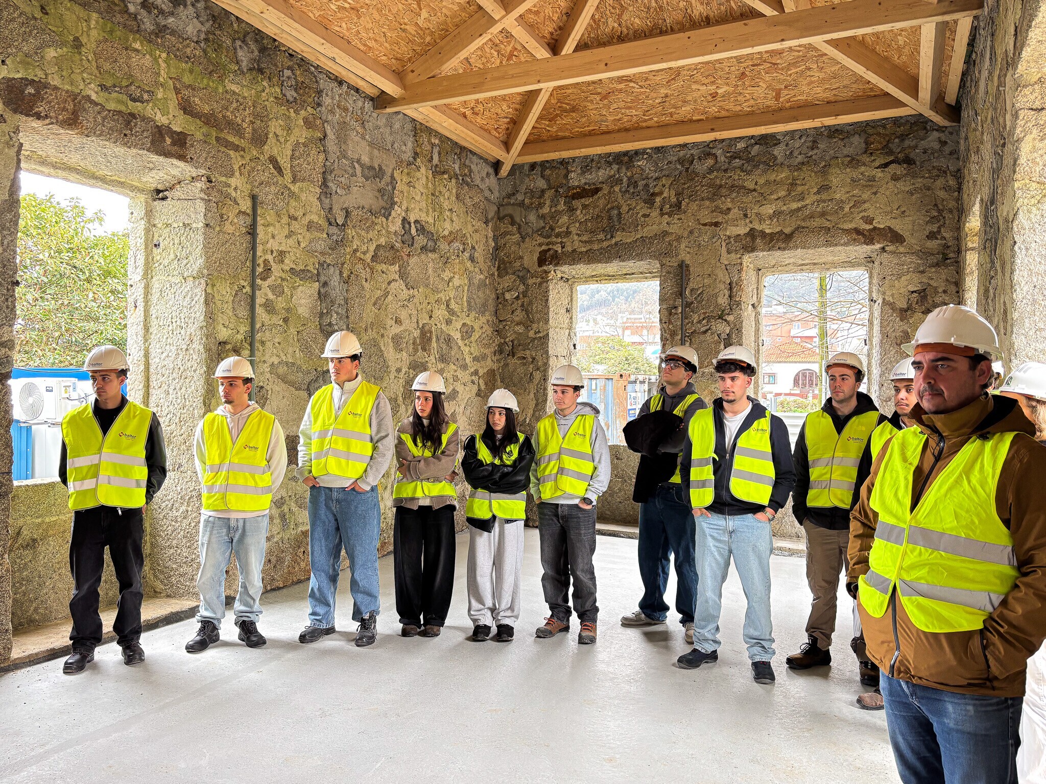 A visita conduzida pelo parceiro Itecons, responsável pelo pacote de trabalho das soluções inovadoras e sustentáveis, apresentou aos estudantes os recursos de eficiência energética e circulares que integram esta reabilitação, com a conclusão prevista para este verão. Durante a visita, foi destacado o potencial de utilização dos diversos espaços do futuro edifício, já que a versatilidade foi um dos focos do projeto de arquitetura, com soluções de baixo carbono, circulares e energeticamente eficientes.