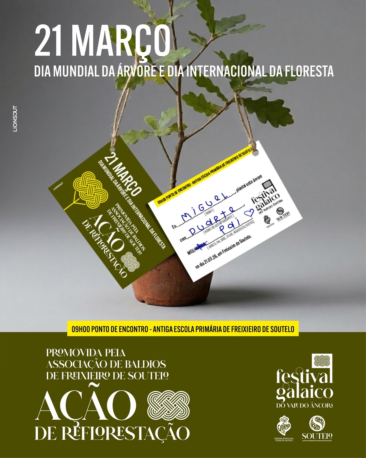 Integrada no Festival Galaico do Vale do Âncora, a iniciativa é promovida pelo Conselho Diretivo dos Baldios de Freixieiro de Soutelo, com o apoio da Junta de Freguesia, do Município de Viana do Castelo e da Companhia de Bombeiros Sapadores, que asseguraram a preparação do terreno e a abertura das covas de plantação.