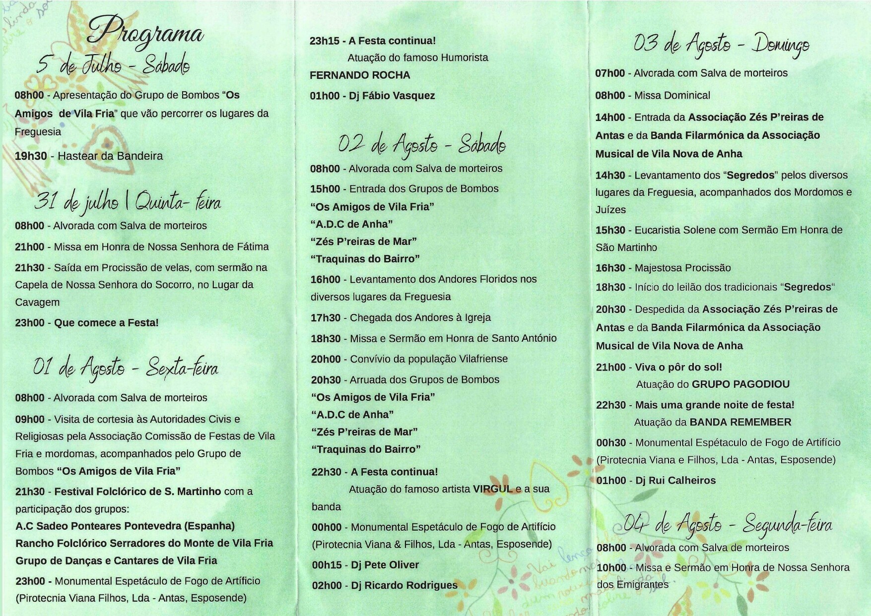 - Festa em Honra de São Martinho, Santo António e Senhora dos Emigrantes - Vila Fria