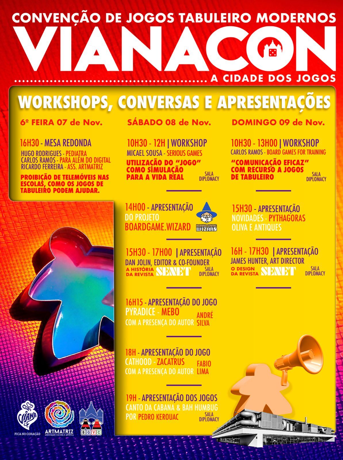 Workshops sobre a utilização do jogo na educação e comunicação, torneios, apresentações e lançamentos exclusivos.