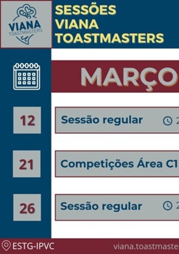 12 a 26 MarSessões do Viana Toastmasters
